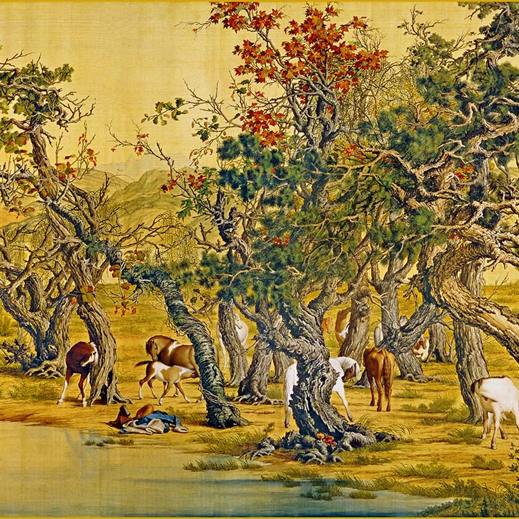 《百骏图》是意大利籍清代宫廷画家郎世宁创作的绘画作品,是中国十大传世名画之一。此图稿本为纸质,原作分别收藏于美国纽约大都会博物馆(纸质稿本和中国台北故宫博物院绢本)。此图共绘有100匹骏马,姿势各异,或立、或奔、或跪、或卧,可谓曲尽骏马之态。画面的首尾各有牧者数人,控制着整个马群,体现了一种人与自然界其他生物间的和谐关系。