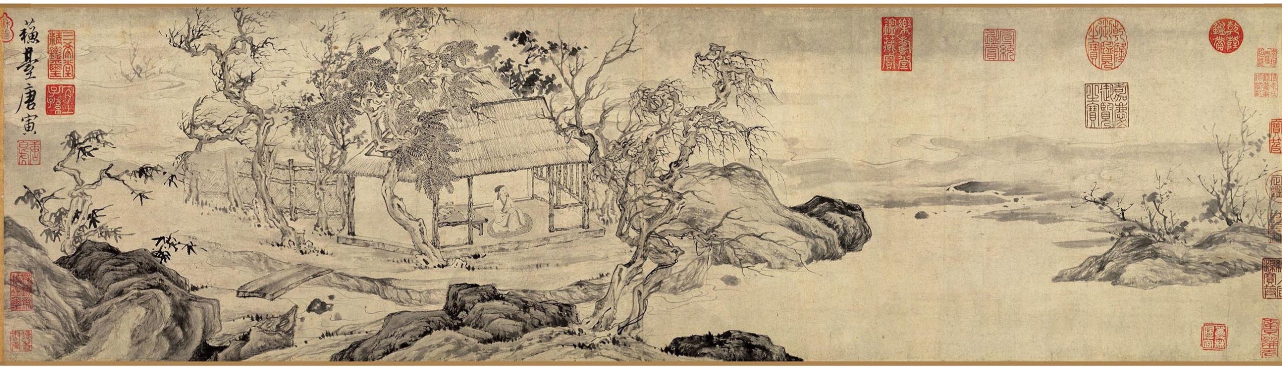 唐寅字子畏,号六如居士,为“吴门四家”之一,画作多承宋元技法,此图为其山水画成熟期作品。
