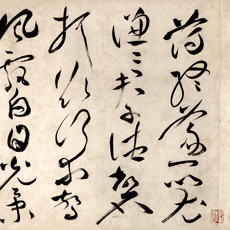 通观全卷,既有颠张醉素之势,又有黄庭坚之功,挥笔迅疾,圆转自然,在随意挥洒中自有规矩可寻,狂而不乱,情浓势足,激跃奔发,妍媸不凡,朴拙沉劲而又不失流丽多姿。有融合百家,遒媚流畅之美。