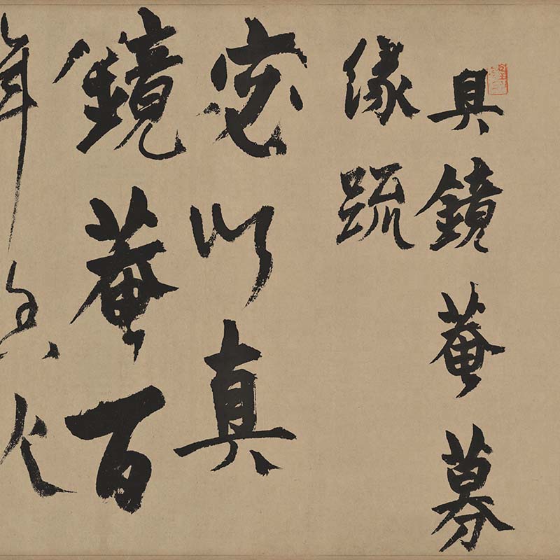 《真镜庵募缘疏卷》是杨维桢的行草书佳作。他晚年与僧道交往频繁,经常出入于寺庙道院,此卷特地为真镜庵募缘所撰写。其书章局变化丰富,随意而奇崛,用笔力遒韵稚,笔法跳宕,竭尽一唱三叹、回肠荡气的能事。用墨浓淡互济,干湿对比强烈,表现出作者的强烈的艺术个性,怪癖性格的极度张扬。