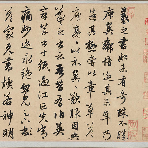 第三则是说王羲之的书法扬名天下,当时有不少人模仿王字达到了以假乱真的境界,张翼就是其中的佼佼者。王羲之经常要写表文上奏给晋穆帝司马聃,司马聃吩咐张翼模仿王羲之的表文重写一份。张翼写得惟妙惟肖,晋穆帝看了很满意,在表文后题写了几句批文,又令人寄给王羲之,王羲之头几次竟然没发觉。有一次,王羲之为了揣摩圣意,仔细端详了晋穆帝寄回的表文,一看字中的笔法有细徽的差异,墨色的神采略显呆滞,他才发现这不是自己的手迹,是有人造假作弄他。王羲之叹道:“小人造假,几可乱真啊!”