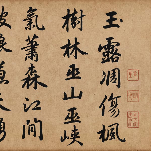 右少陵秋兴八首盖古今决唱也,沈君以此纸求书,因为书此纸短仅得其四耳,子昂题。此诗是吾四十年前所书,今人观之未 必以为吾书也。子昂重题。至治二年正月十七日。