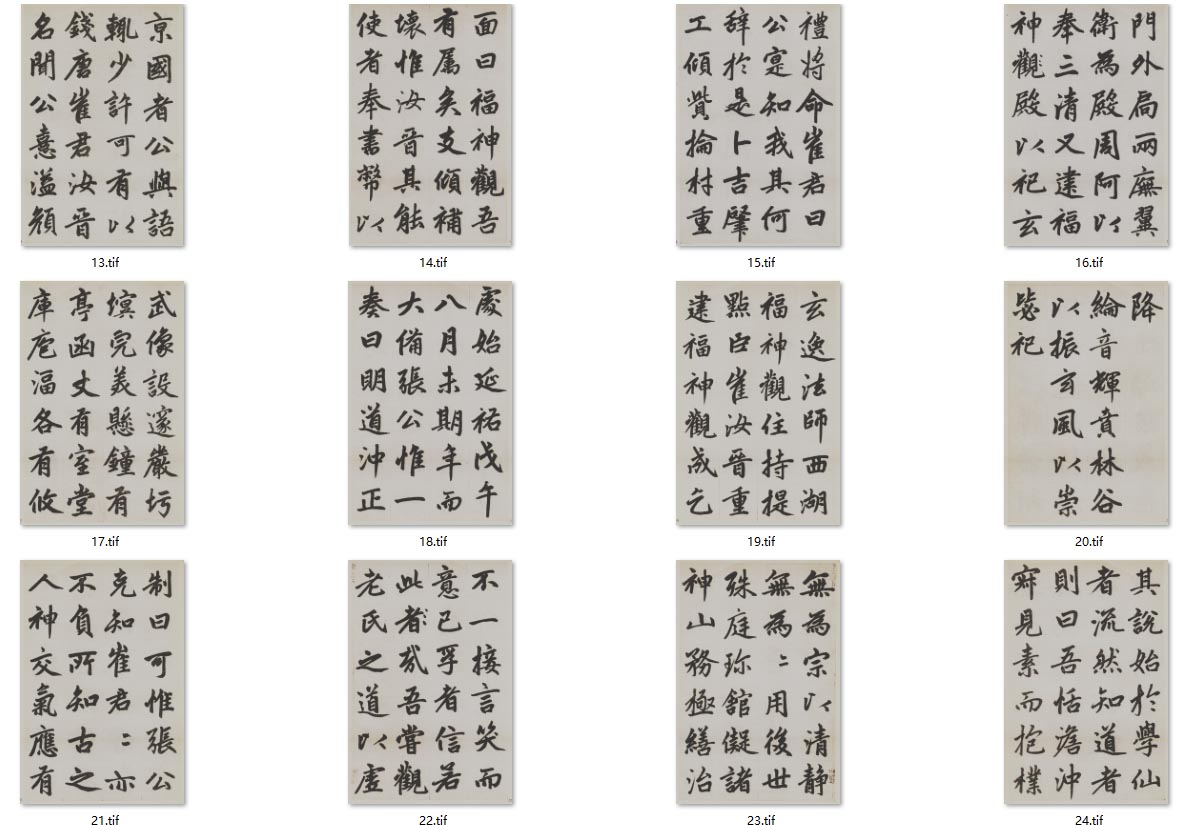 《杭州福神观记》是一篇碑记,由著名文学家邓文原撰文,记述道教领袖张惟一委派崔汝晋重建位于西湖断桥之侧的福神观之始末。赵孟頫书此碑记于元延祐七年(1320年),时已67岁,属其极晚年作品,已臻“人书俱老,炉火纯青”的境界。作品以乌丝界栏。字体主要取法唐代李邕,参以己意,雄健开张,用笔圆劲浑厚。全文七百余字一气呵成,功力非凡。当年应曾上石,今碑已佚,唯此墨迹存世。