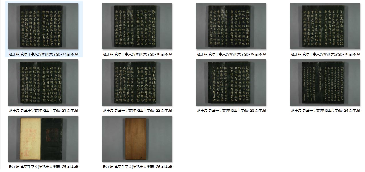 元代赵子昂书法赏析《真草千字文》,日本早稻田大学图书馆藏,真草二体字帖。 赵孟頫书法始终有遒媚、秀逸之特色。他在追取古人法度中,不论师法何家,都以“中和”态度取之、变之,锺繇之质朴沉稳,羲之之蕴藉潇洒,献之之流丽恣肆,李邕之崛傲欹侧,皆能融人笔端,但华美而不乏骨力,流丽而不落甜俗,潇洒中见高雅,秀逸中吐清气。这是赵氏深厚的功力、丰富的学养、超凡脱俗的气质所致。