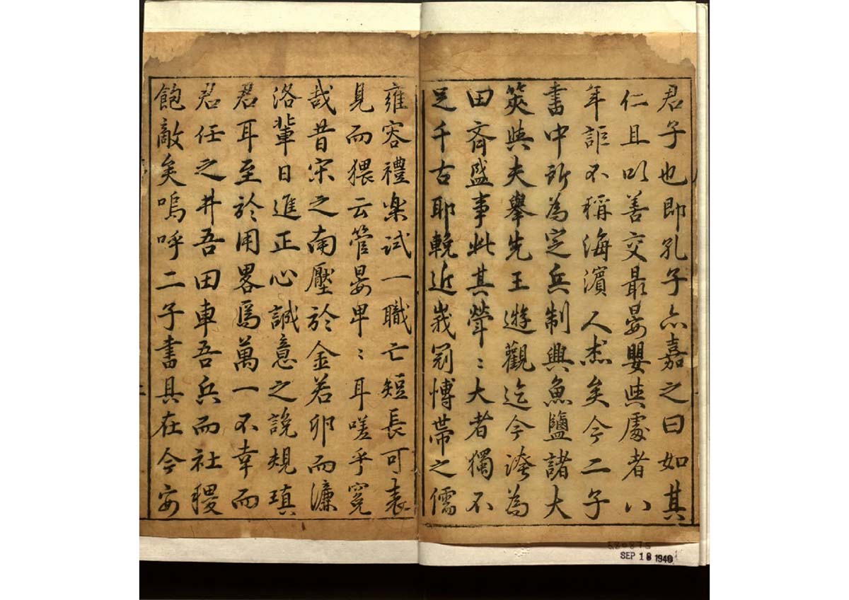 此《管晏春秋百家评林》四卷。原题:“编修石篑陶望龄校阅,修撰青阳翁正春参订,状元兰嵎朱之蕃遴选,温陵后学林世选编次,书林自新斋余良木绣梓。”卷一至三称管子春秋,卷四晏子春秋,因晏子亦称管氏书为“春秋”,甚为不经。是书当即世选所编,而托之兰嵎者。《四库存目》卷一百三十二著录《翰林三状元二十九子品汇释评》,其伪之事,正与此同。首为朱之蕃序。此本为上下两截版,下栏十行二十字,小字双行同字,上栏小字七行。明万历间书林自新斋余良木刻本。