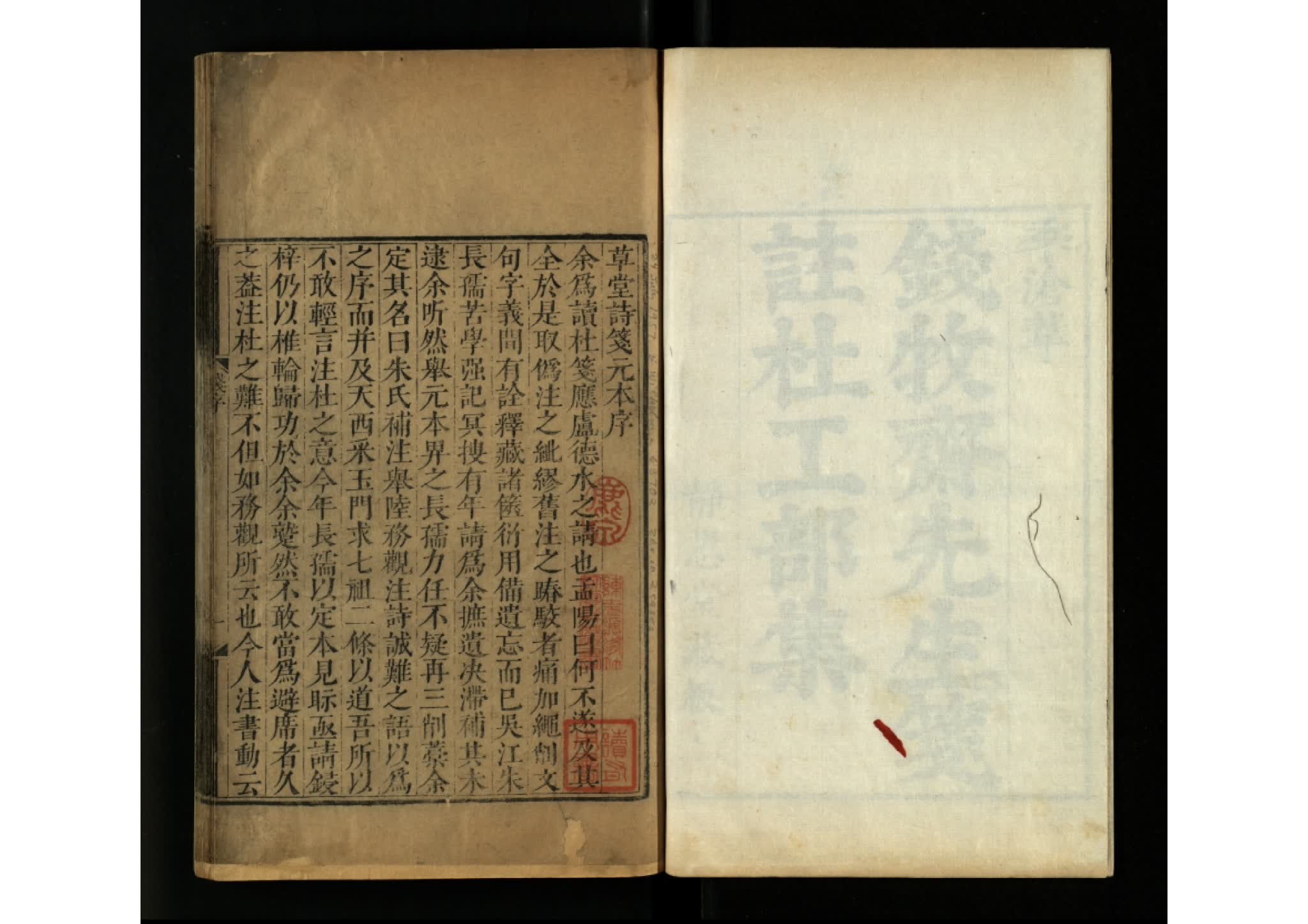 《錢牧齋先生箋注杜工部集》是明末清初學者錢謙益(號牧齋)對杜甫詩集的箋注本,成書於清初,但因其學術淵源與明代密切相關,常被視為明代杜詩學的重要成果。