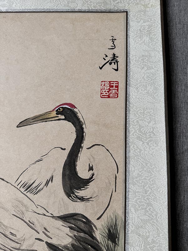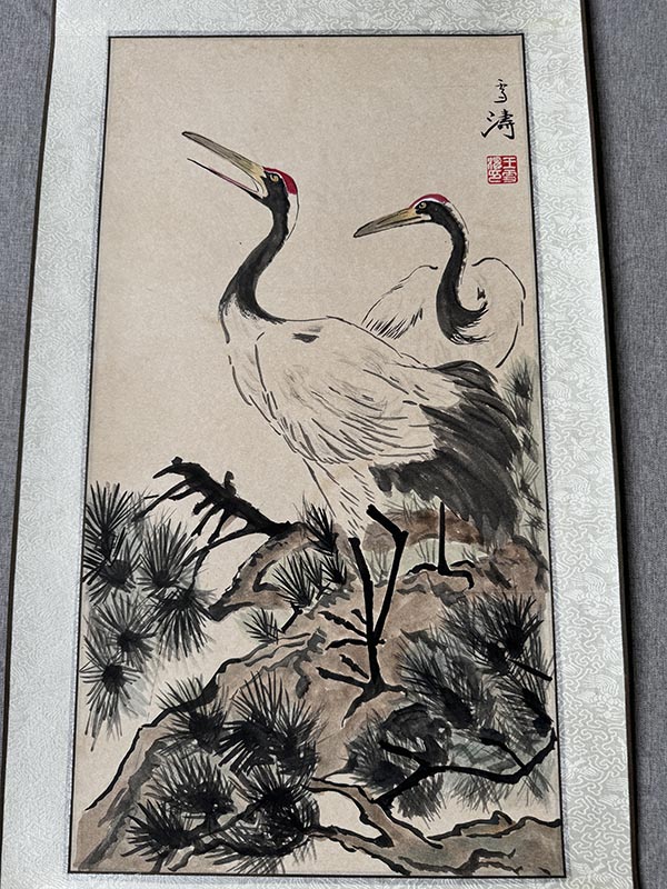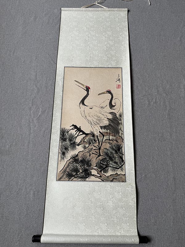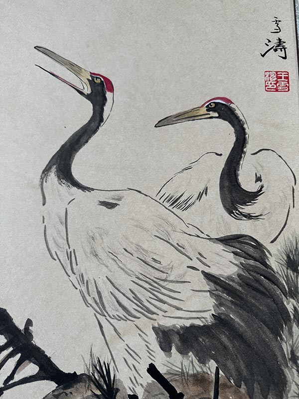 落款为雪涛的字画一幅,松鹤延年图,国画花鸟画,纯手绘,收藏装饰馈赠佳品。整体尺寸46*138cm,画心35*66cm,卷轴装裱,品相完好。