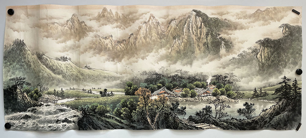 ¥1,688.00 库存 1 件 纯手绘彩墨山水画03横幅国画中国风客厅装饰画沙发背景墙办公室风水挂画 数量 加入购物车 分类: 名家字画 标签: 国画山水, 客厅字画横幅, 山水画, 彩墨山水, 彩墨画, 无款国画, 无款字画, 横幅山水画, 纯手绘字画, 风水挂画, 风水画 描述 描述 纯手绘彩墨山水画145x60cm 纯手绘彩墨山水画 彩墨山水画 背面 纯手绘彩墨山水画中国画山水国画作品名家字画 145x60cm 宣纸画心未装裱 暂未落款,可根据需求题字落款,标价即是售价,喜欢的老板可以直接付款。 相关产品 汪家铭 国画山水四尺青山霁后云犹在名家字画书画作品收藏客厅装饰竖幅 ¥50,000.00 加入购物车 纯手绘 徐悲鸿雄鸡图国画中式玄关装饰竖版现代客厅水墨画走廊过道挂画 ¥1,200.00 加入购物车 王雪涛 荷塘小趣 荷花鳜鱼纯手绘名家字画收藏装饰客厅书房国画花鸟画 ¥800.00 加入购物车 纯手绘彩墨山水画05 四尺横幅国画 中国风客厅装饰画办公室风水挂画 ¥1,500.00 加入购物车