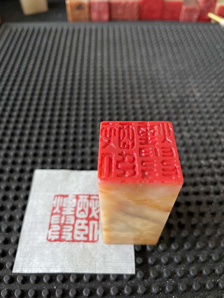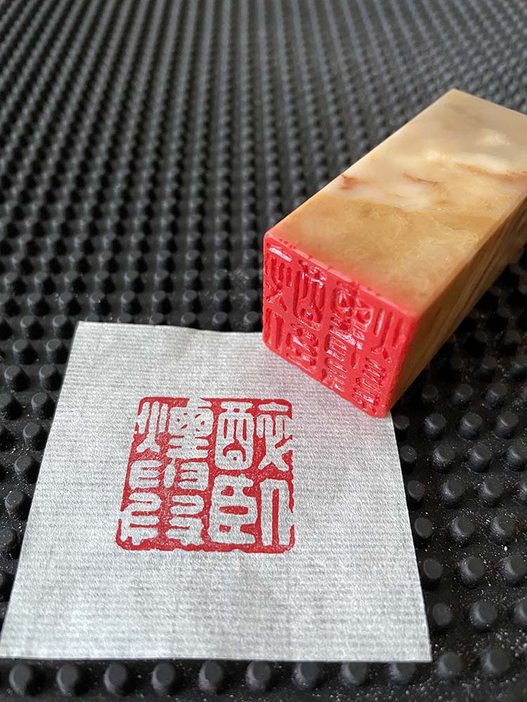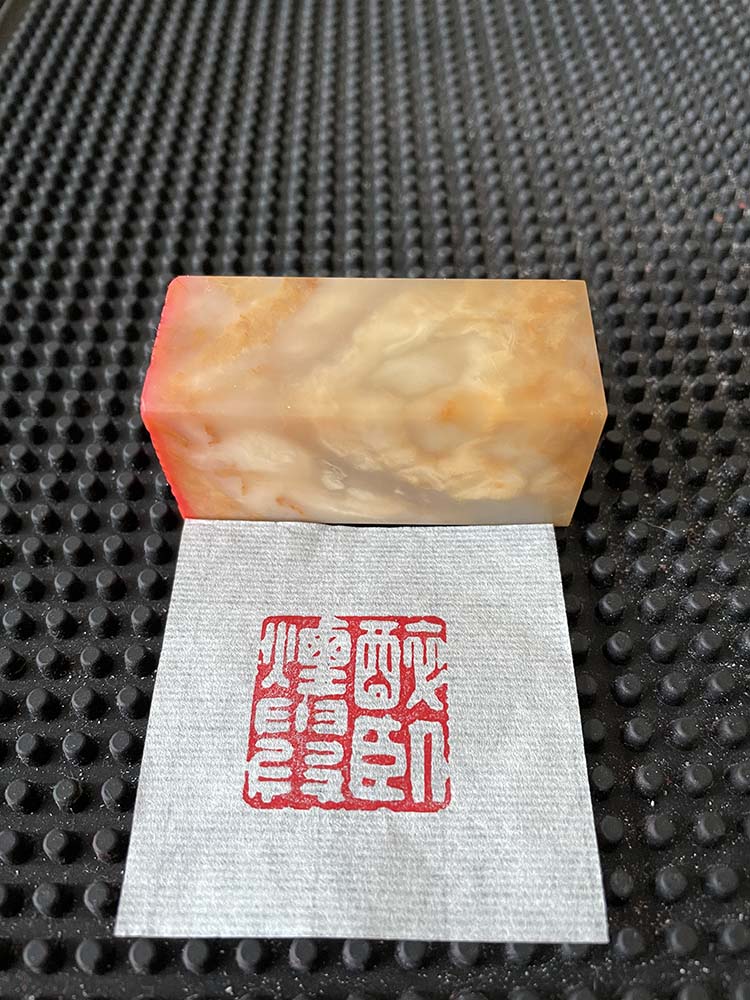 ¥98.00 库存 1 件 醉卧烟霞成品闲章巴林石印章纯手工书画章 数量 加入购物车 分类: 手工闲章 标签: 书画印章, 刻字, 巴林石, 成品闲章, 篆刻定制, 金石篆刻, 闲章 描述 描述 释文:醉卧烟霞 材质:巴林石 尺寸:印面约2.4*2.4厘米 高度约5.4厘米 标价即卖价,赠送锦盒。 包邮,新疆西藏等偏远地区需补邮费15元。 成品闲章巴林石印章纯手工书画章 相关产品 知白守黑纯手工篆刻成品闲章书画印章 压角章 ¥98.00 加入购物车 珍藏老印章 成品闲章老去方知此味长 书法用印 国画印章装饰摆件 ¥299.00 加入购物车 珍藏老印章 成品闲章半窗烟雨 书法用印 国画印章装饰摆件 ¥299.00 加入购物车 促销中 知足常乐成品闲章纯手工篆刻书画印章压角章 ¥98.00 原价为:¥98.00。¥88.00当前价格为:¥88.00。 加入购物车